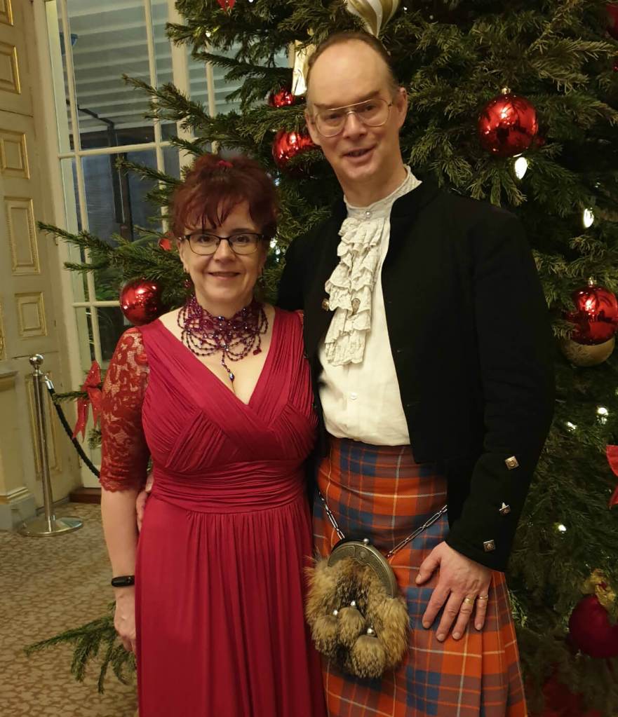 Luckily there’s Scottish dancing. I first learned it at school and took it up again when I met my husband getting on for 25 years ago. We’ve been dancing together very happily ever since, at events ranging from social evenings where everyone has a few glasses of wine and dances to recorded music, to formal balls with a live band.
